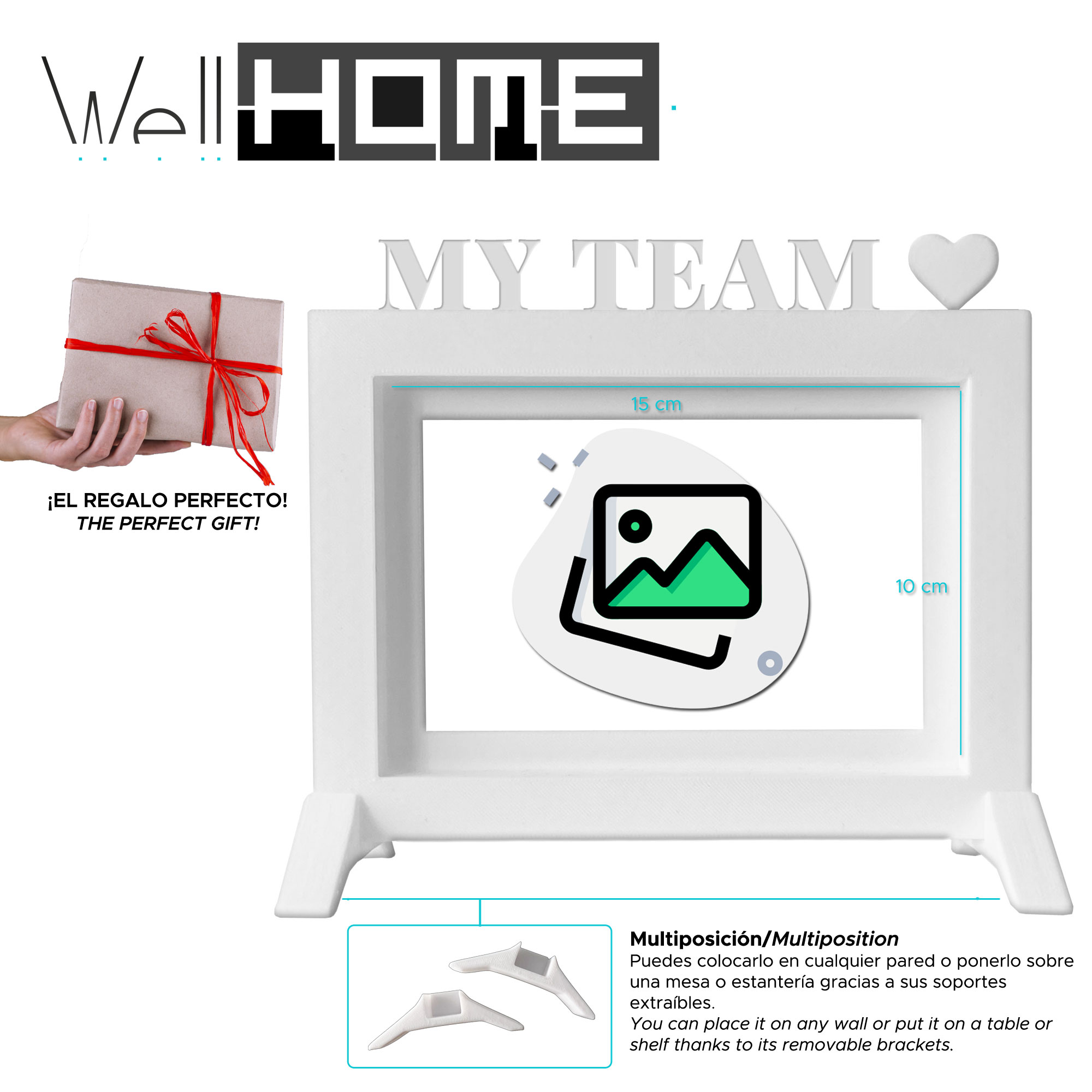 Well Home – Marco de Fotos de Mesa o Pared / Modelo »MY TEAM» / Tamaño del marco 20,5×13,5×1,5 para Fotos de 10×15 / Color Blanco