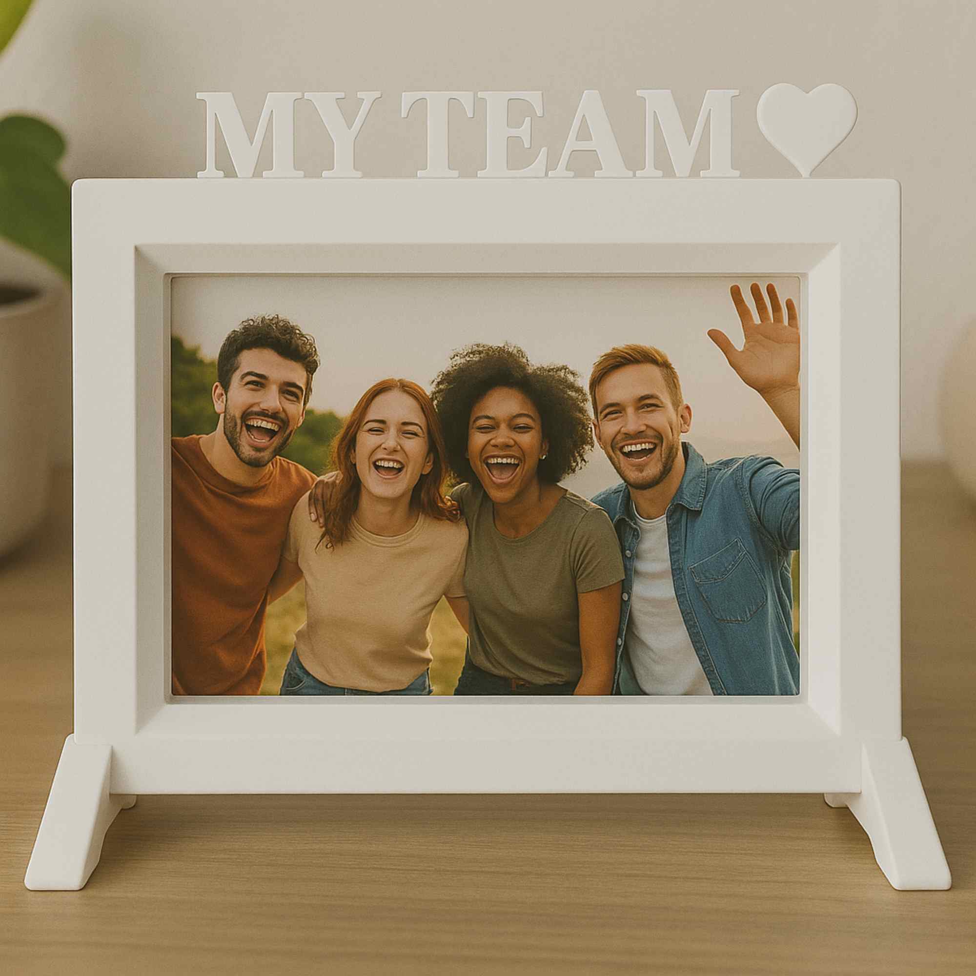 Captura la esencia de tus momentos más especiales con el marco de fotos «MY TEAM», una pieza elegante y versátil que realza tus recuerdos con un estilo moderno y sofisticado.
