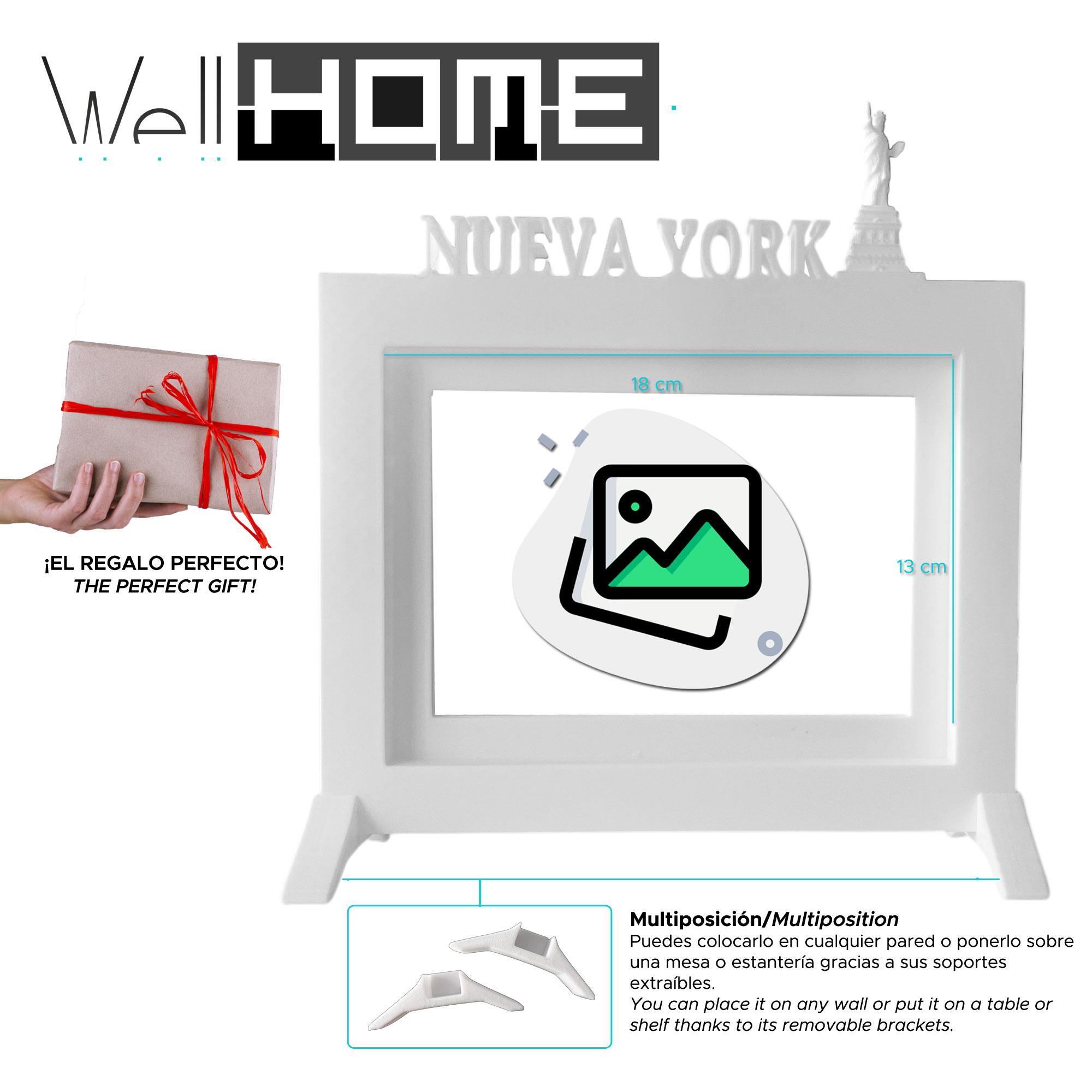 Well Home – Marco de Fotos de Mesa o Pared / Modelo »NUEVAYORK» / Tamaño del marco 24,5×17,5×1,5 para Fotos de 13x18cm / Color Blanco