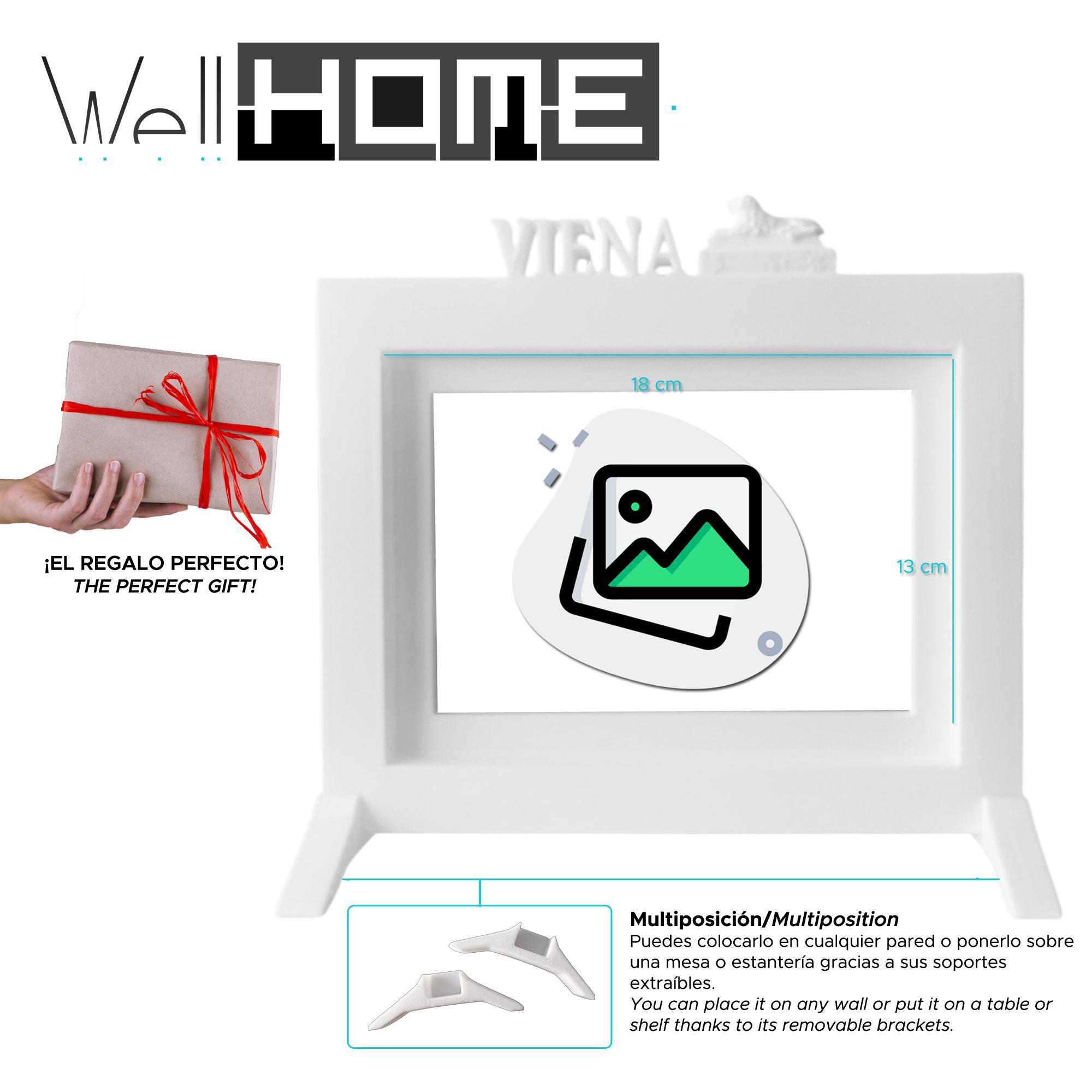 Well Home – Marco de Fotos de Mesa o Pared / Modelo »VIENA» / Tamaño del marco 24,5×17,5×1,5 para Fotos de 13x18cm / Color Blanco