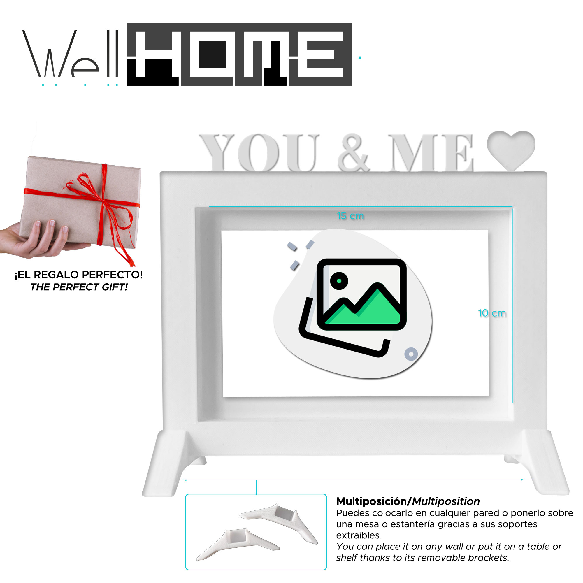 Well Home – Marco de Fotos de Mesa o Pared / Modelo »YOU & ME» / Tamaño del marco 20,5×13,5×1,5 para Fotos de 10×15 / Color Blanco