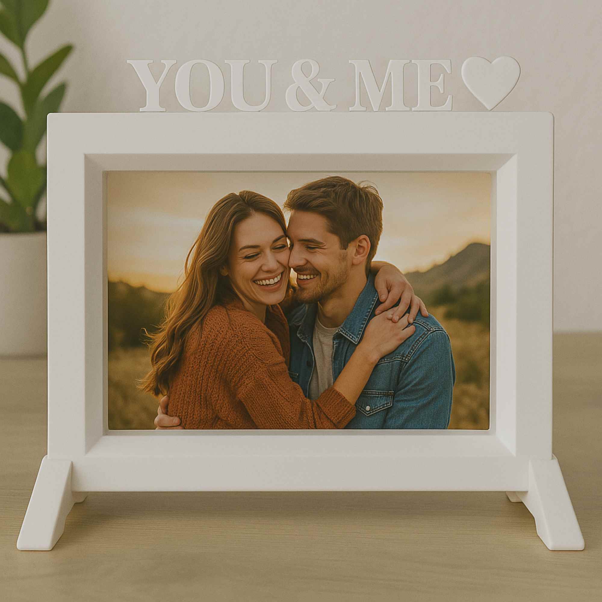 Captura la esencia de tus momentos más especiales con el marco de fotos «YOU & ME», una pieza elegante y versátil que realza tus recuerdos con un estilo moderno y sofisticado.